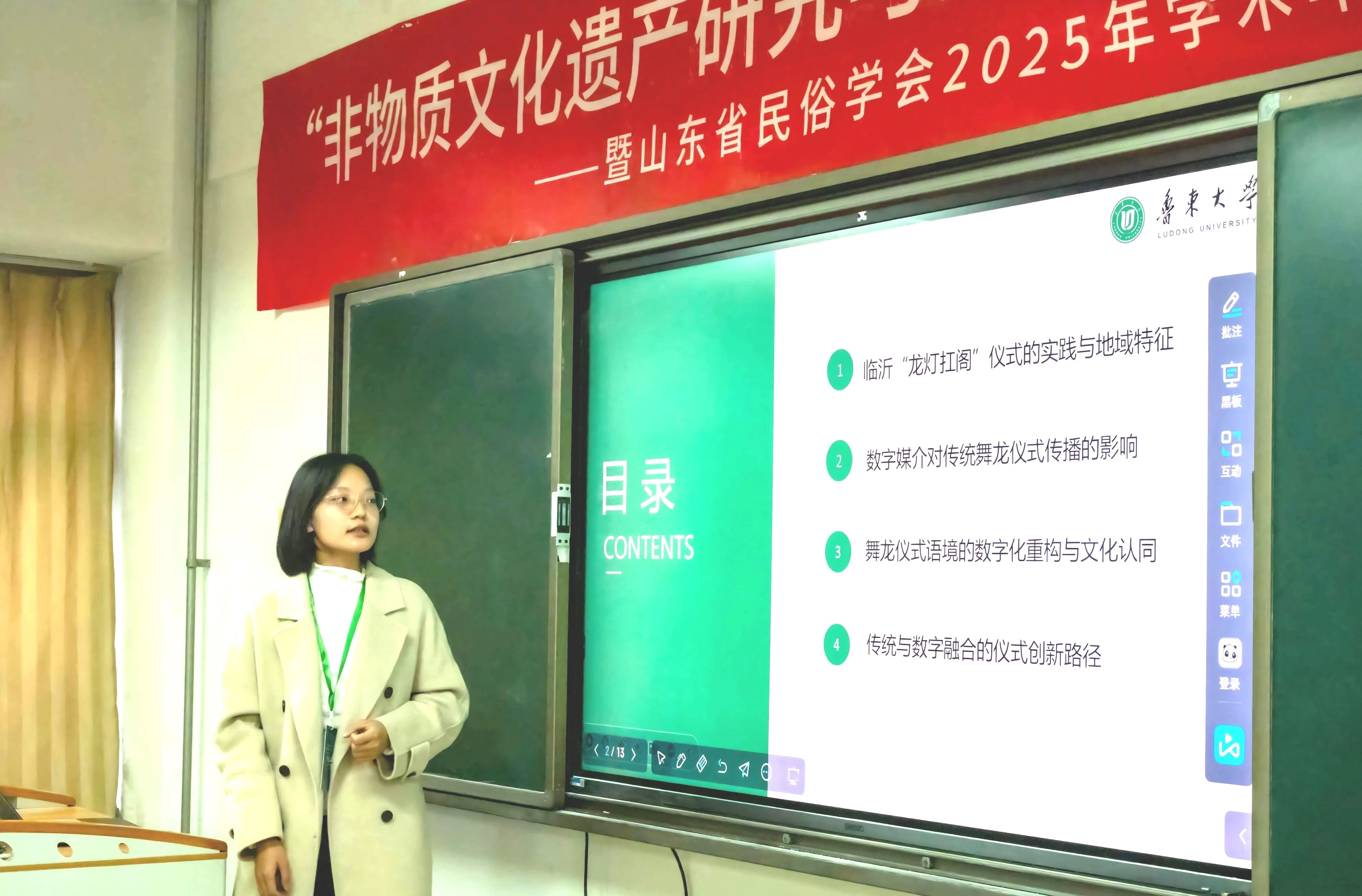 毛晓帅基于河南信阳社区调查,指出失地农民通过自身的艺术交流实践解决身份模糊、社交断裂等问题,并借此重构社会秩序。烟台大学李晓宁研究认为烟台海阳大秧歌最初是卫所军户的家宴乐舞,随着卫所制度取消,逐渐演变为军户后代维系自身文化认同的重要纽带。鲁东大学林琳阐释了高校助推地方戏曲创新性发展的三级联动机制,就传统戏曲怎样注入当代生命力问题分享了自己的实践与思考。