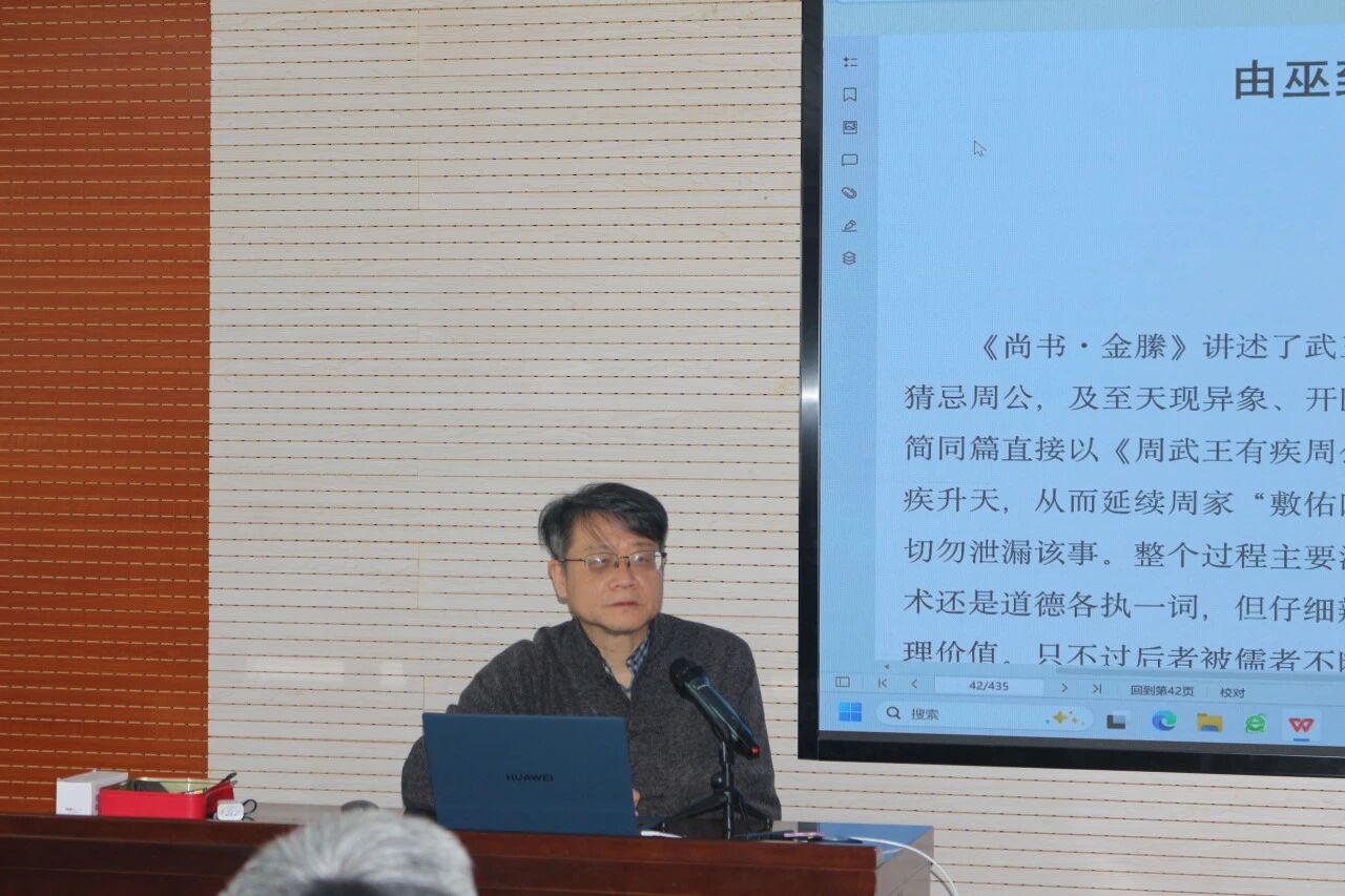 刘光胜教授以清华简为突破口,从王权推动天命理论建构的视角切入,以期推进殷周时期天命观念的研究。韩国国立全北大学人文社会馆博士生李孝康揭示了《尚书》祭祀乐歌的文体特征及其在早期礼乐文明中的地位。