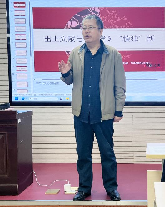 2026年3月26日晚七点,第1期“新元典论坛”博士生论文讨论会在知新楼A2116教室如期举行,各级博士、硕士同学到场旁听,交流论文写作经验,借鉴前沿研究思路。中国哲学研究所所长赵卫东在正式汇报前发表讲话,鼓励同学们珍惜此次交流机会,积极表达研究想法,认真听取专家指导,在交流中提升自身学术能力。