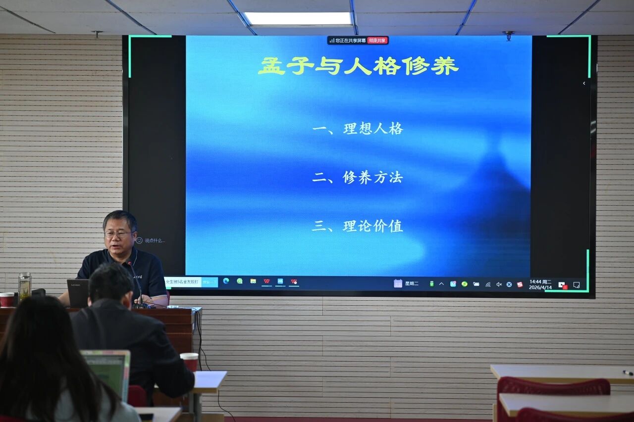 理想人格与修养工夫有独到见解。本次活动以“坚韧笃行,奋楫图强”为主题,意在引导青年学子从孟子思想中感悟那份迎难而上、不屈不挠的人格力量,以坚韧不拔的意志磨砺品格,以奋楫争先的姿态勇毅前行,在经典研读中涵养精神底色,在知行合一中锤炼过硬本领。在与会师生热烈的掌声中,讲座正式拉开帷幕。