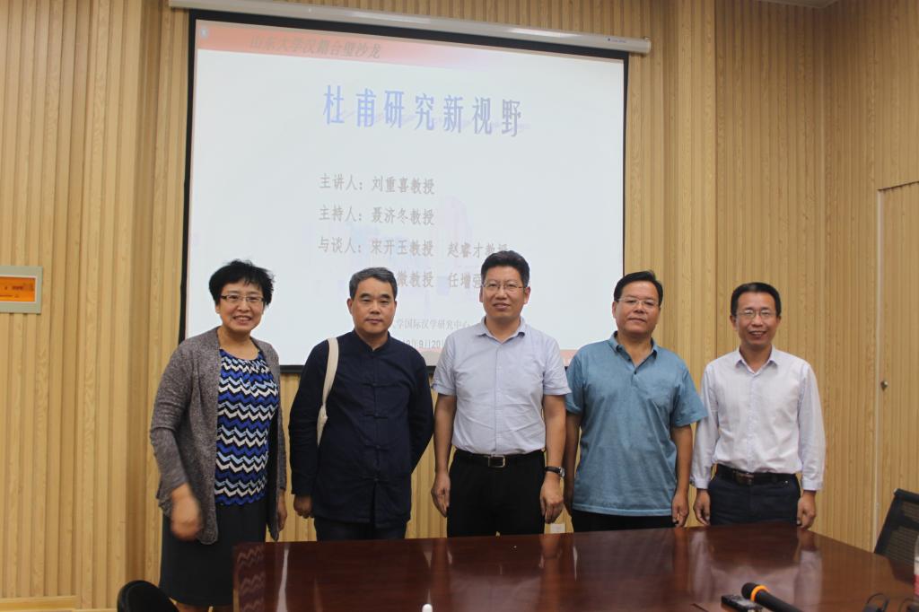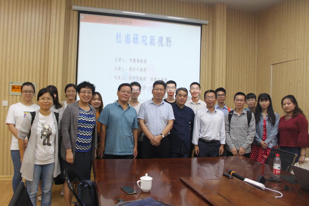为此,刘教授提出了以下三个可供突破的方向:其一,重视域外汉籍的研究。如今南大和山大在域外汉籍的收集、整理、研究工作方面已经初具规模,汇集了很多珍贵的海外汉籍资料。域外杜甫诗集的回归,不仅将为杜诗研究提供新的土壤,同时,有关域外杜诗学的研究也将会成为新的学术热点;其二,关注历代有关杜甫、杜诗的书法和石刻研究。这是目前杜甫、杜诗研究的薄弱点,可以为杜诗校勘、杜甫典范意义的确立提供新材料;其三,可以从诗学理论角度研究杜诗,即把杜诗研究与中国古代文学理论批评结合起来。除以上三点外,还可以从与杜甫相关的祠堂、民俗等角度进行研究,这些方向都尚有开拓的空间。刘教授就杜甫研究新视野问题与在座老师进行了深入讨论。