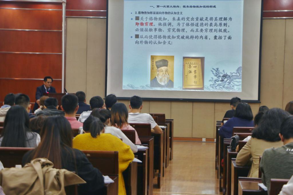 次日上午,马教授继续作为孔学堂第737期传统文化公益讲座的主讲嘉宾,以题为“从儒学一个核心概念的演变看儒学与科学的关系”来为贵州省内外高校师生和市民150余人分享了格物致知与科学关系的研究成果。现场讨论热烈,贵州师范大学大二学生秦雨说,马教授从格物致知含义的两次转向谈了a片无码
