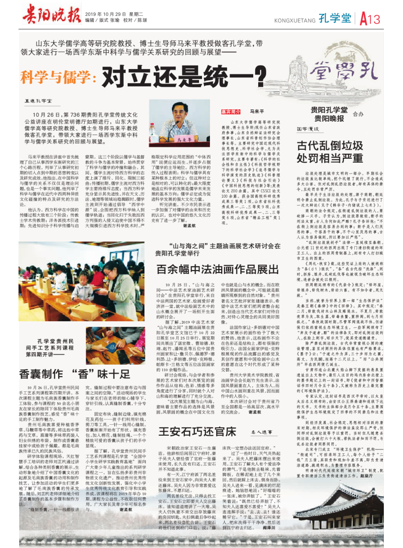 马教授此次在贵阳孔学堂的两场讲座,社会反响热烈,《贵阳晚报》还以“科学与儒学:对立还是统一?”为题,作出了专题报道。