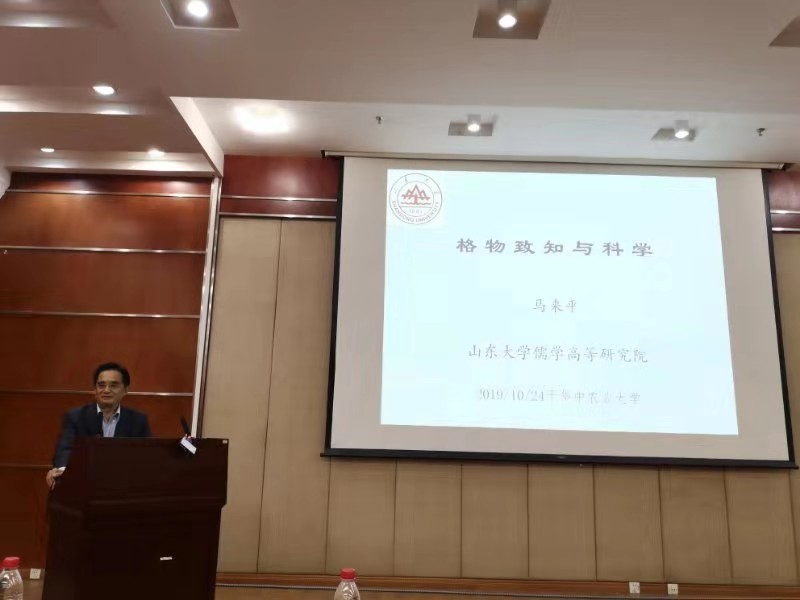 教授、博士生导师,现任山东省政府参事,山东自然辩证法研究会理事长,山东省科普创作协会理事长马来平老师应华中农业大学、贵阳孔学堂和贵州大学之邀,先后赴武汉和贵阳作了为期一周四场讲学报告,其主题分别为:格物致知与科学;西学东渐中科学与儒学关系研究的回顾与展望;从儒学一个核心概念的演变看儒学与科学的关系;与研究生谈成才四要素。两地、四场报告均受到所在地高校师生及社会各界人士的广泛欢迎,反响热烈。《贵阳晚报》还以“科学与儒学:对立还是统一?”为题,为马教授在贵阳孔学堂的讲座内容作出了专题报道。