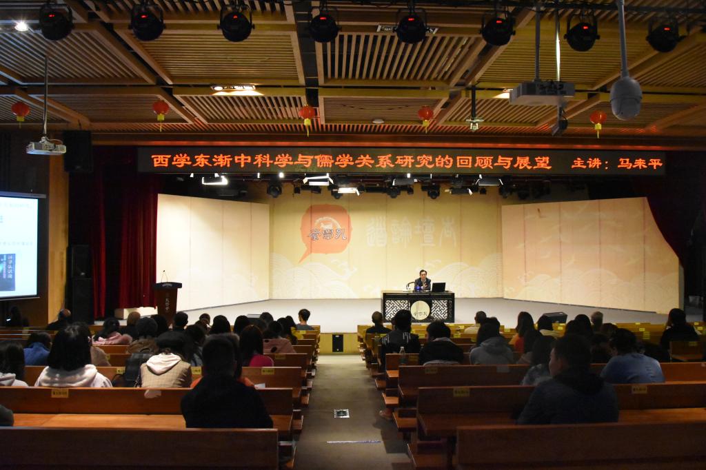 马教授在讲座中首先梳理了自己从事西学东渐研究的三个心路历程,列举了从事研究初期的切入点到中期的思想转变以及研究成效。他指出,在中国科学与儒学的关系不仅仅是理论问题,也是一个事实问题。他列举了科学与儒学在近代中西两种异质文化碰撞的特点及研究的方法论。他认为,西方科学在中国的传播过程大致有三个阶段:传教士学术传教期;洋务派技术引进期;先进知识分子科学传播与启蒙期。这三个阶段以儒学与基督教的斗争为基本背景,始终贯穿了科学与儒学的冲撞和融合。其间,儒学主流对待西方科学的态度上演了排斥、同化、限制三部曲:传播初期,儒学主流对西方科学主要持排斥态度;当西方科学充分显示其先进性,并在天文、历法、地理等领域站稳脚跟时,儒学主流则开始通过倡导“西学中源”说,企图把西方科学纳入到儒学轨道;当同化归于失败而西方列强的入侵又迫使中国不得不大规模引进西方科学技术时,严格限定科学应用范围的“中体西用”说便应运而生,并逐步占据了儒学的主导地位。西方科学的传入过程表明:科学与儒学具有某种根本上的对立;但这种对立是相对的,可以转化的;最大限度地适应科学的发展是儒学未来发展的基本方向;儒学必定成为促进科学发展的强大文化力量。