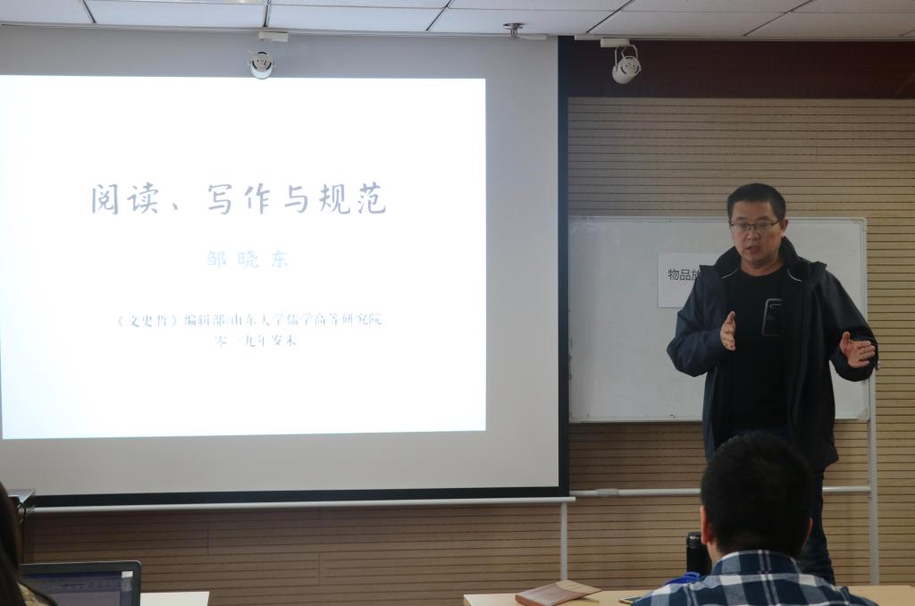 首先,邹晓东老师指出同学们要树立为自己、为历史、为追求真理而写作的宏愿。刊物不发之文,不代表此文在学界无出头之日;专家否定之文,不等于此文没有核心竞争力,关键要有足够的学术韧性。所以,同学应树立宏愿并不断优化路径、精益求精。