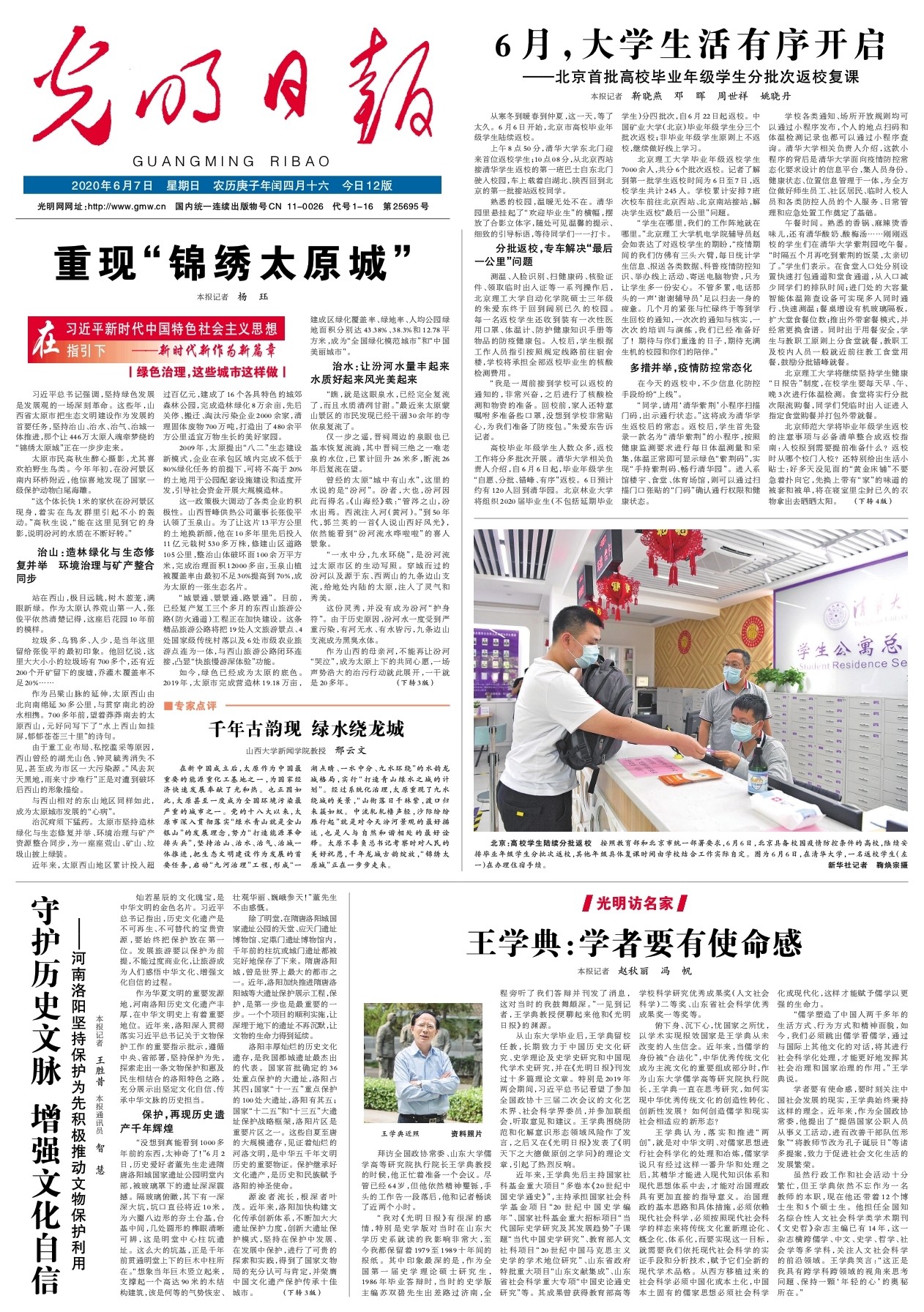 历史系就读的我影响非常大,至今我都保留着1979至1989十年间的报纸。其中印象最深的是,作为全国第一届史学理论硕士研究生,1986年毕业答辩时,当时的史学版主编苏双碧先生出差路过济南,全程旁听了我们答辩并刊发了消息,这对当时的我鼓舞颇深。”一见到记者,王学典教授便聊起来他和《光明日报》的渊源。