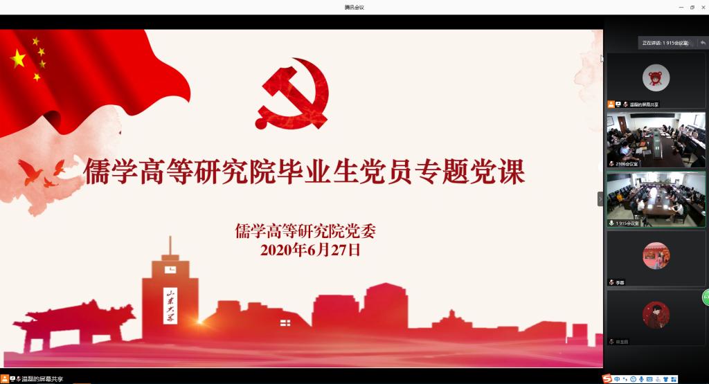 党委以线上线下结合的方式在知新楼组织了毕业生党员离校前的最后一次党课,党委书记李平生讲授了“发挥党员先锋模范作用,坚守初心勇担时代使命”专题党课。