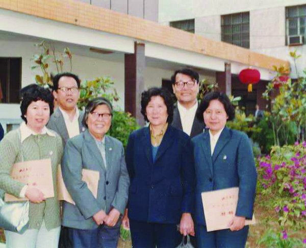 前排左起华滇珂、谈滨若(华岗校长夫人)、吕慧娟、华丹坡,后排左起田广渠、作者。