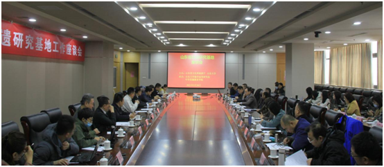 党委书记李平生出席并讲话。山东省文化馆馆长兼山东省非遗中心主任王衍良、山东省艺术研究院院长林凡军、山东省文化和旅游厅非遗副处长蒋士秋等出席了会议。来自全省七个省级非遗研究基地和四个受邀院校的20余位代表汇报了非遗研究基地的学术成果及未来工作思路。会议由山东省文化和旅游厅非遗处处长刘朋鑫主持。