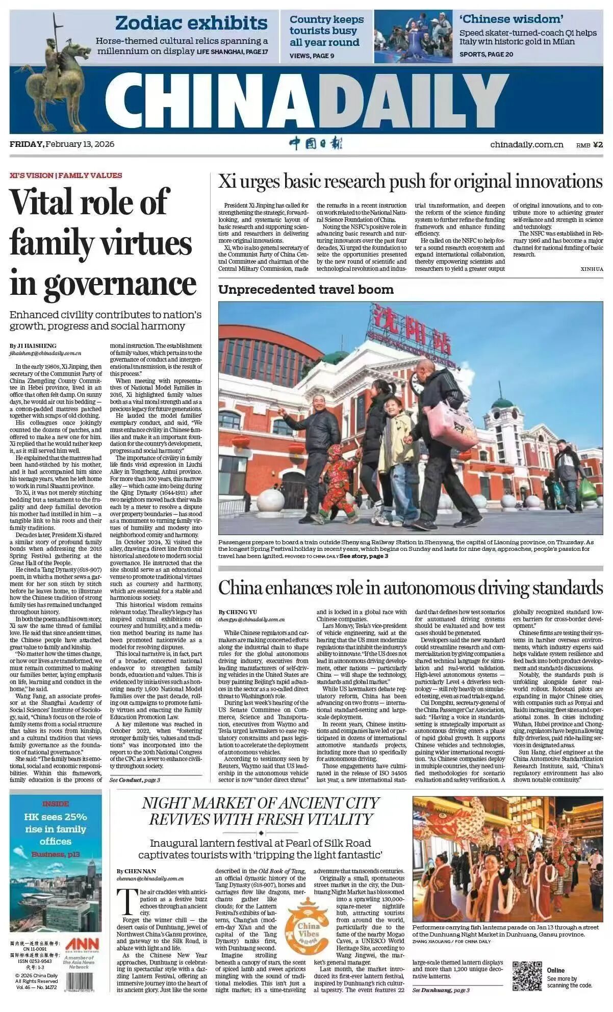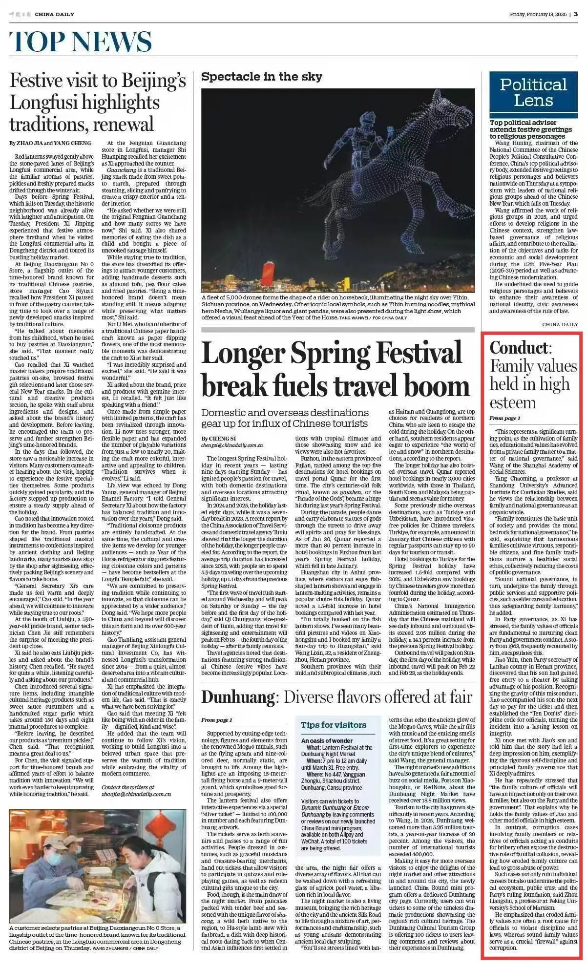 此外,他还建议强化数字化赋能与家校社协同,支持利用大数据、人工智能等技术创新教学场景,打造线上线下结合的青少年传统文化实践平台,倡导依托传统节日开展家庭文化活动,推动社区建设传统文化体验阵地,让教育从校园延伸到生活。