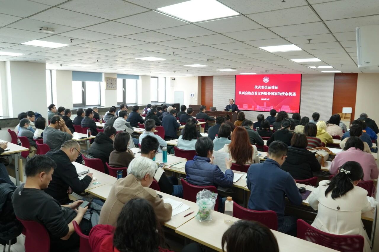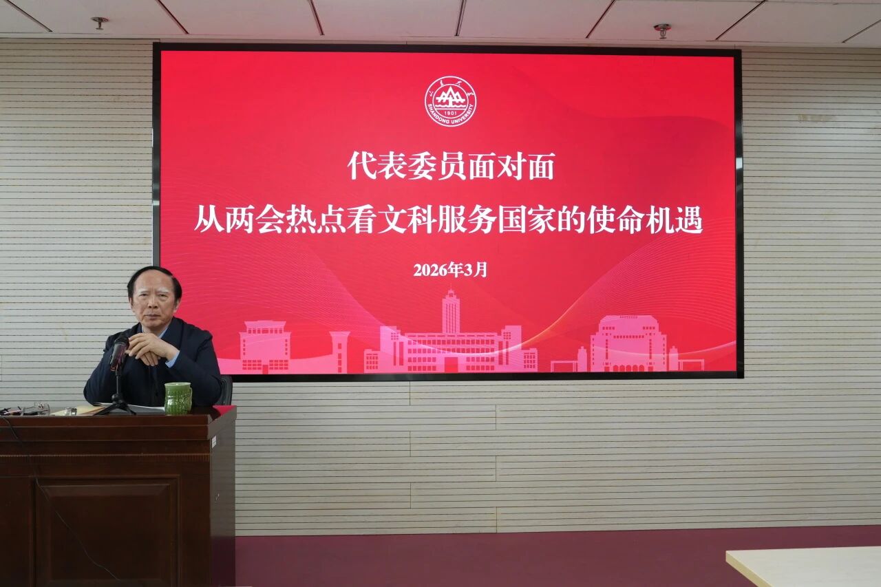 院长王学典教授为全院师生作题为《从两会热点看文科服务国家的使命机遇》的专题报告,第一时间传达2026年全国两会精神。