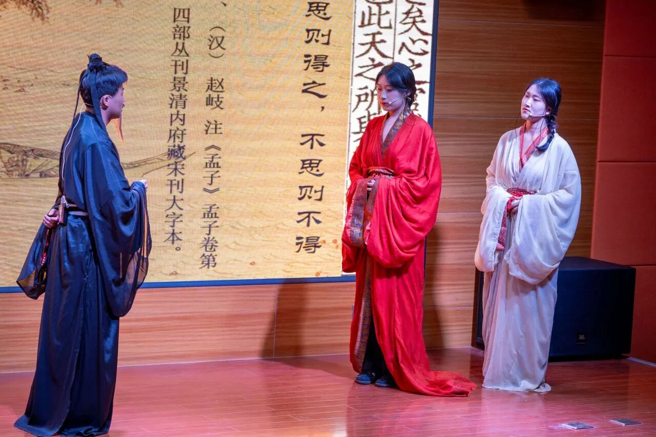 “学无止境,气有浩然”的校训精神深度契合。“典籍故事青年说”第四季《孟子》趣读活动自2026年1月启动,得到全校师生的大力支持。经专家评审,共18组选手脱颖而出,晋级决赛。决赛舞台上,选手们倾情投入,将《孟子》中的经典篇章转化为鲜活的故事演绎,让a片无码